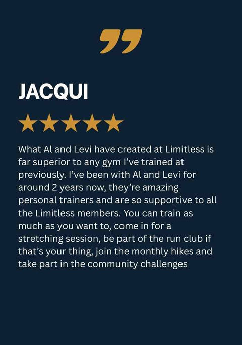 I've struggled to find the right PT in the past and I just wish I found Limitless sooner, all my training programmes are built for me and my goals and I finally enjoy my training again!I cant recommend Limitless enough!"